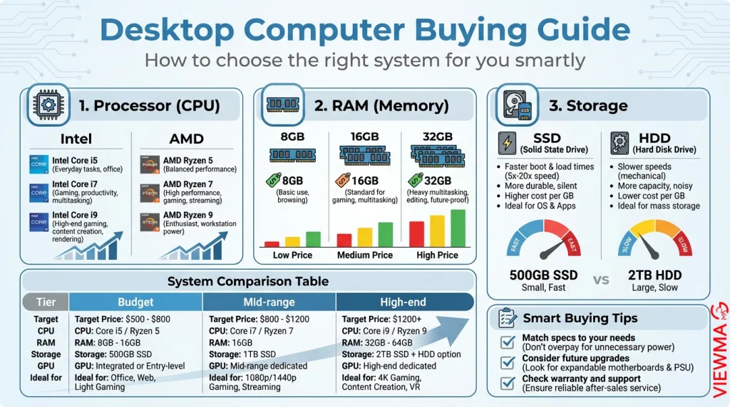 اما تنوع بسیار زیاد قطعات، نسلها و برندهای مختلف باعث شده خرید کامپیوتر دسکتاپ بدون آگاهی کافی، به یک تصمیم پرریسک تبدیل شود. در این مقاله تلاش کردهایم یک راهنمای جامع، ساده و در عین حال تخصصی ارائه دهیم تا بتوانید متناسب با نیاز واقعی خود، بهترین انتخاب را داشته باشید.
