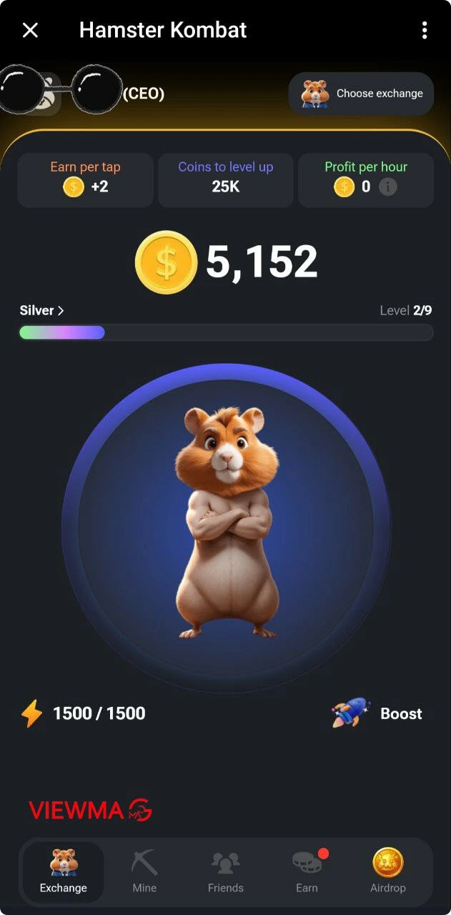 بخش Exchange: در این بخش، شما میتوانید با انتخاب یک صرافی نقش مدیرعامل آن را بر عهده بگیرید. با انتخاب صرافی، توکنهایی از آن صرافی به شما اعطا خواهد شد. در این قسمت، اطلاعات حساب شما شامل امتیاز، سطح، میزان انرژی و بخش Boost نمایش داده میشود. با صرف توکنهای درون بازی، قادر خواهید بود میزان انرژی و تعداد کلیکهای خود را افزایش دهید. همچنین روزانه ۶ انرژی رایگان نیز در اختیار هر کاربر قرار میگیرد.