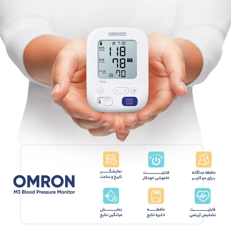 دستگاه فشار خون omron m3 اهمیت بسزایی در سلامت و بررسی کردن فشار خون افراد دارد. این دستگاه به عنوان یک ابزار مهم در سنجش فشار خون محسوب میشود و با داشتن آن میتوانید تا فشار خون خود را به طور دقیق و مداوم چک کنید. فشار خون بالا یکی از عوامل خطر اصلی در بروز بیماریهای قلبی و عروقی است. افراد مستعد فشار خون بالا، افراد سالمند و … با اندازهگیری منظم فشار خون توسط فشارسنج M3، میتوانند تغییرات فشارخون خود را ردیابی و در صورت نیاز و بروز خطر اقدامات درمانی مناسب را انجام دهند.