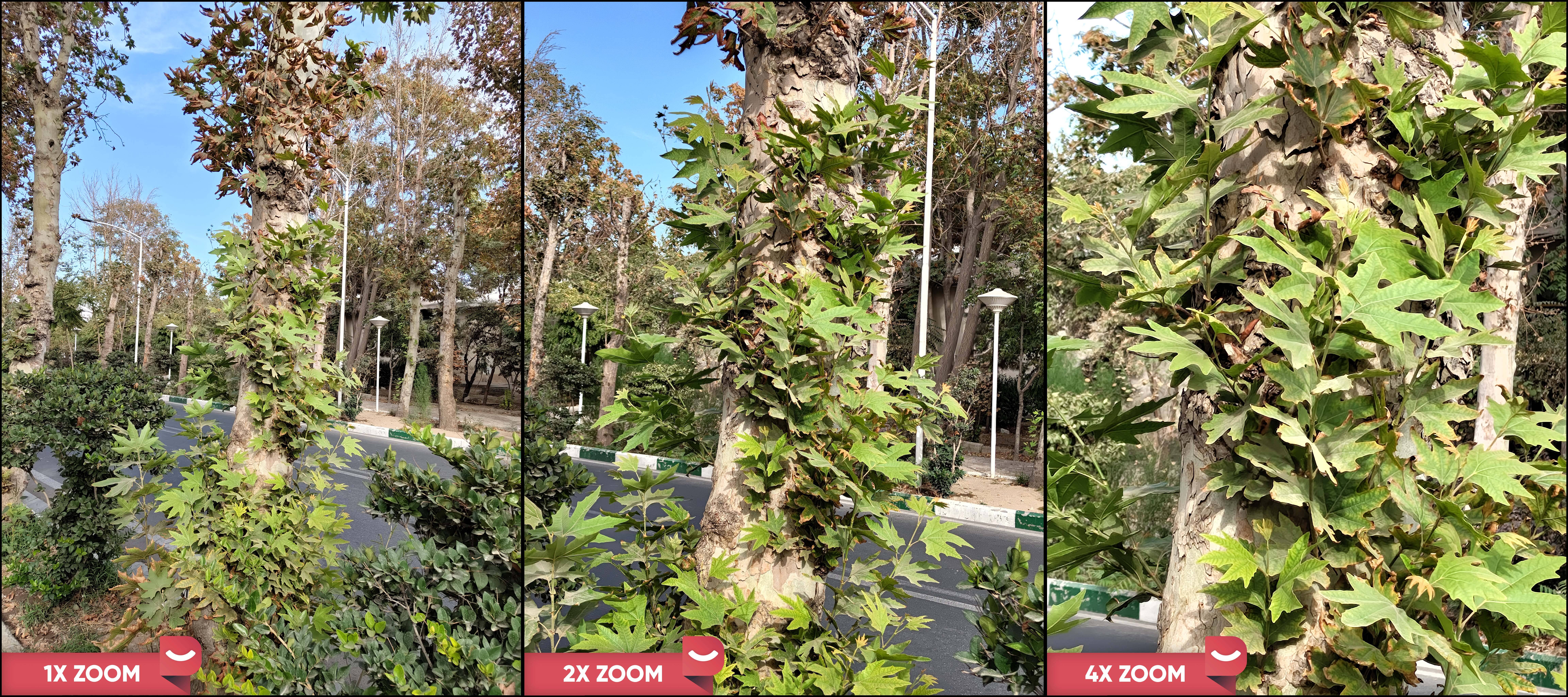 درست است که سنسور دوربین اصلی این گوشی از قابلیت زوم اپتیکال (زوم بدون کم شدن کیفیت) محروم است، اما بهره بردن از قابلیت لرزشگیر اپتیکال یا همان OIS سبب شده تا لرزشهای ناخواسته هنگام عکاسی و فیلمبرداری به حداقل میزان ممکن برسد و این امر تاثیر بسیار بالایی در خروجی تصاویر باکیفیت در حالت زوم دو برابری و چهار برابری دارد. همانطور که در تصاویر خروجی ثبت شده مشاهده میکنید، در حالت زوم دو برابری به نسبت زوم یک برابری تفاوت چندان زیادی را شاهد نیستیم و جزئیات در زوم دو برابری به خوبی و با دقت بالایی نمایش داده شدهاند. در زوم چهار برابری هم خروجی تصاویر مناسبی را شاهد بودیم اما نباید توقع نمایش بسیار دقیق جزئیات را داشته باشید.